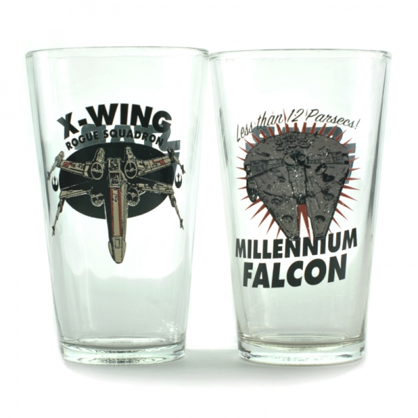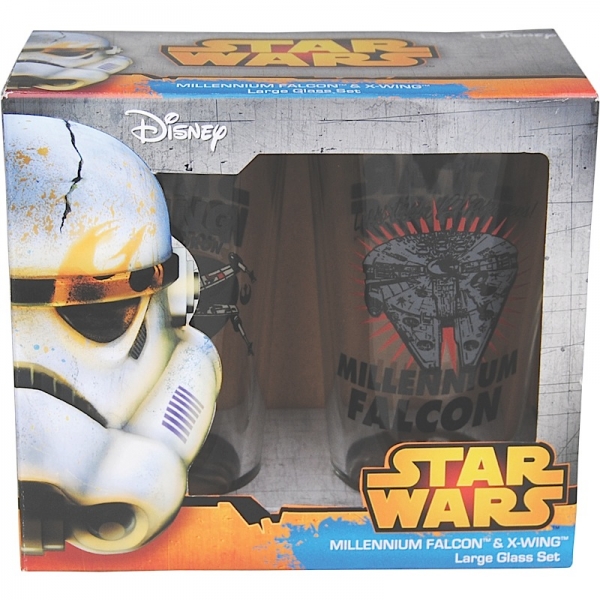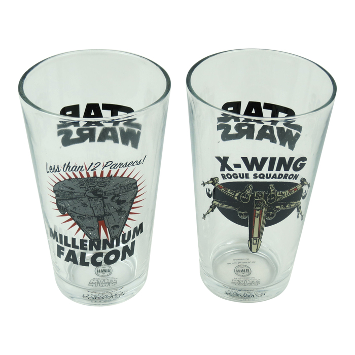 Set 2 pahare mari - Star Wars (Spacecraft) - Millennium Falcon "Less than 12 Parsecs!" si X-Wing "Rogue Squadron"