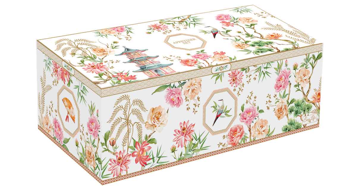 Colectia "Jardins D'Orient" prin designul unic si rafinat, cu inspiratie japoneza, se face intotdeauna remarcata. Eleganta acestor vase din portelan isi va spune cuvantul, ori de cate ori vor fi utilizate.