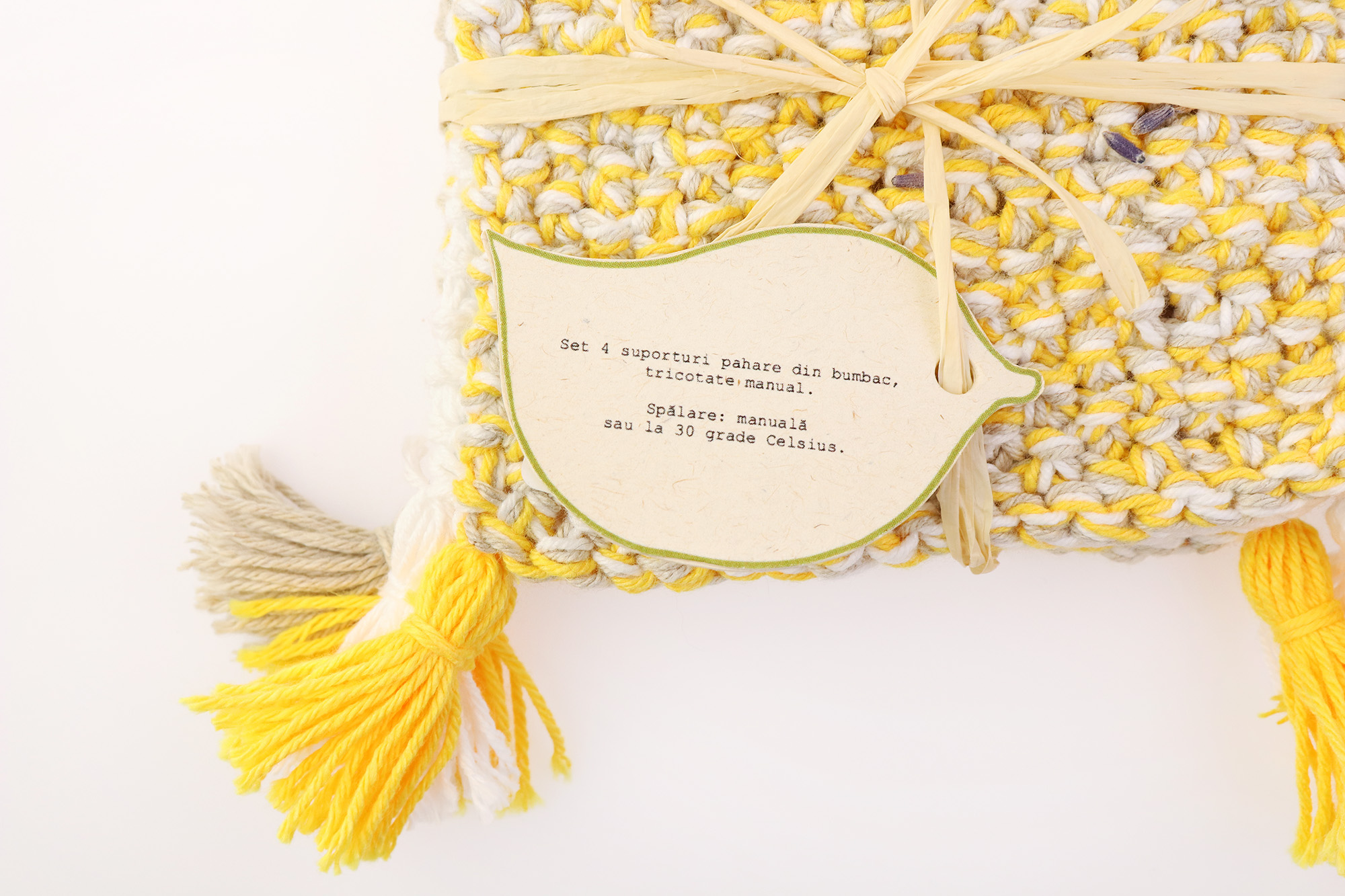 Set 4 suporturi pahare - Galben tricotate manual