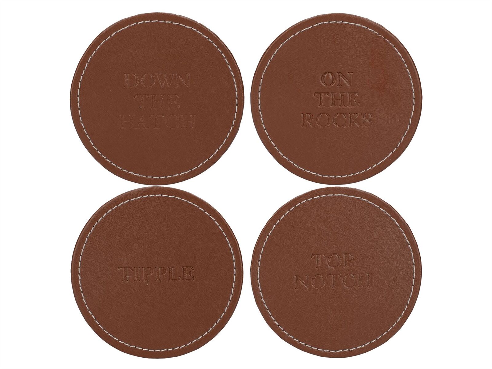 Fiecare suport deține un mesaj sugestiv: ‘Down the hatch’; ‘On the rocks’; ‘Tipple’ și ‘Top notch’.