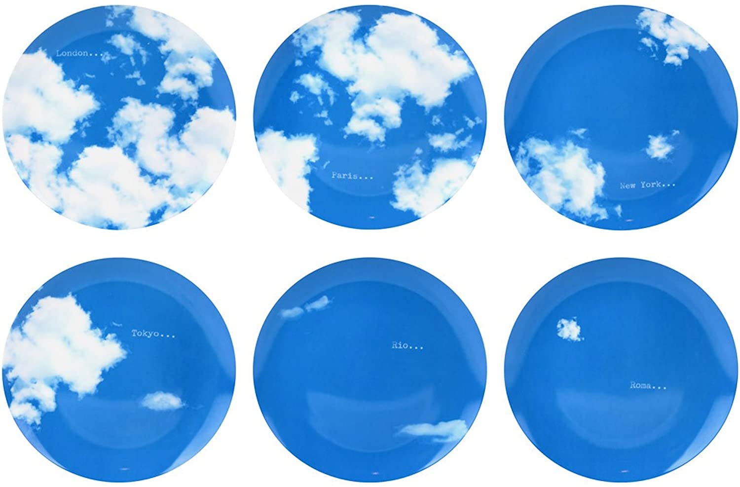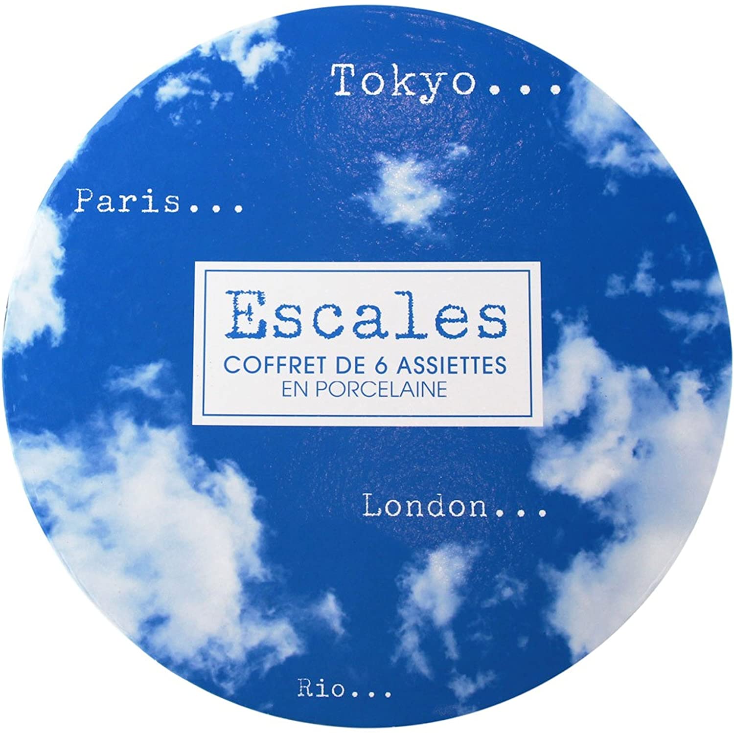 Londra, New York, Paris, Rio, Roma, Tokyo ...unde va fi următoarea escală? Un set de șase farfurii pentru escapadele în care cerul este din ce în ce mai albastru ...Farfuriile vin într-o cutie frumoasă de cadou.