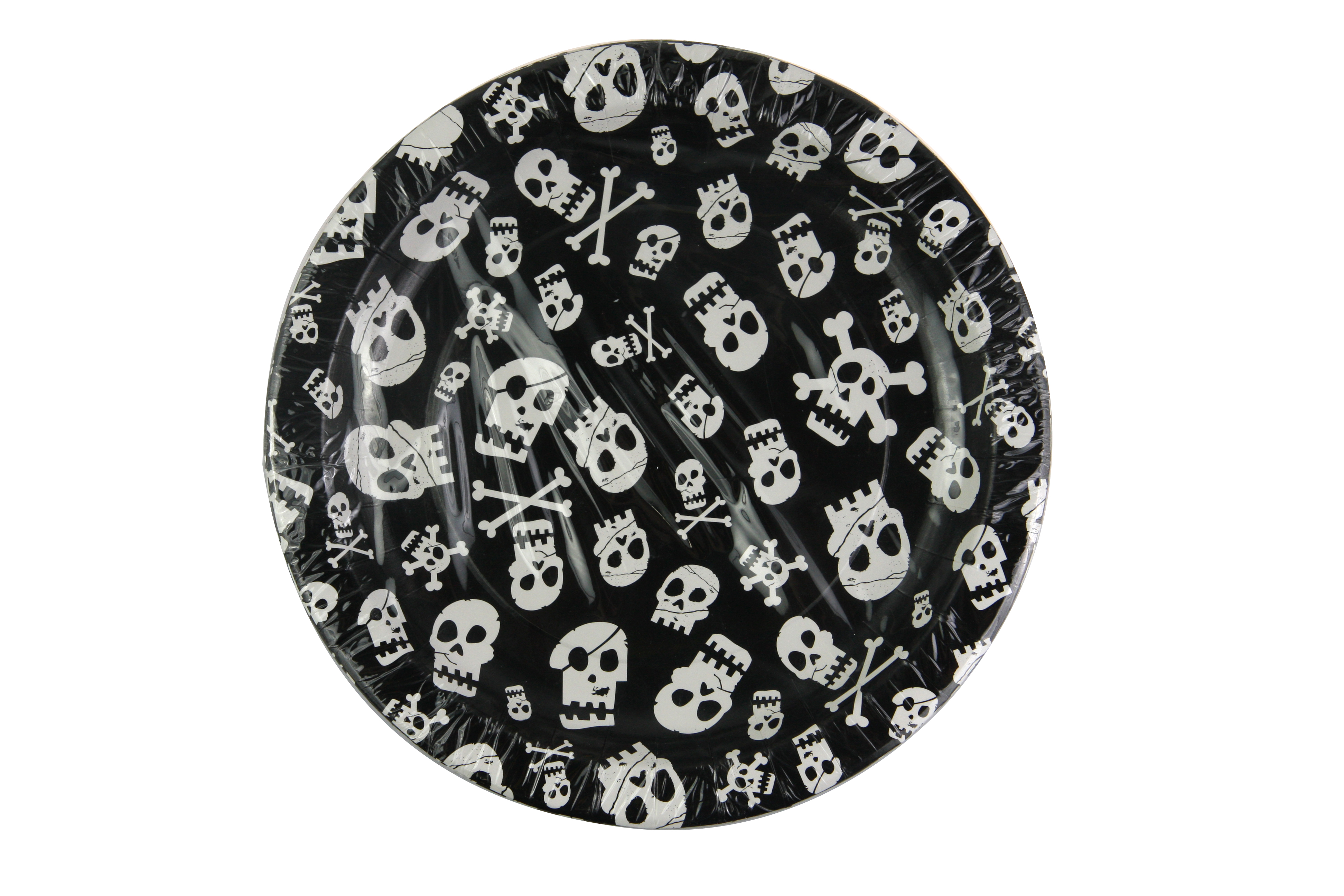 Set de 6 farfurii din plastic decorate cu cranii.