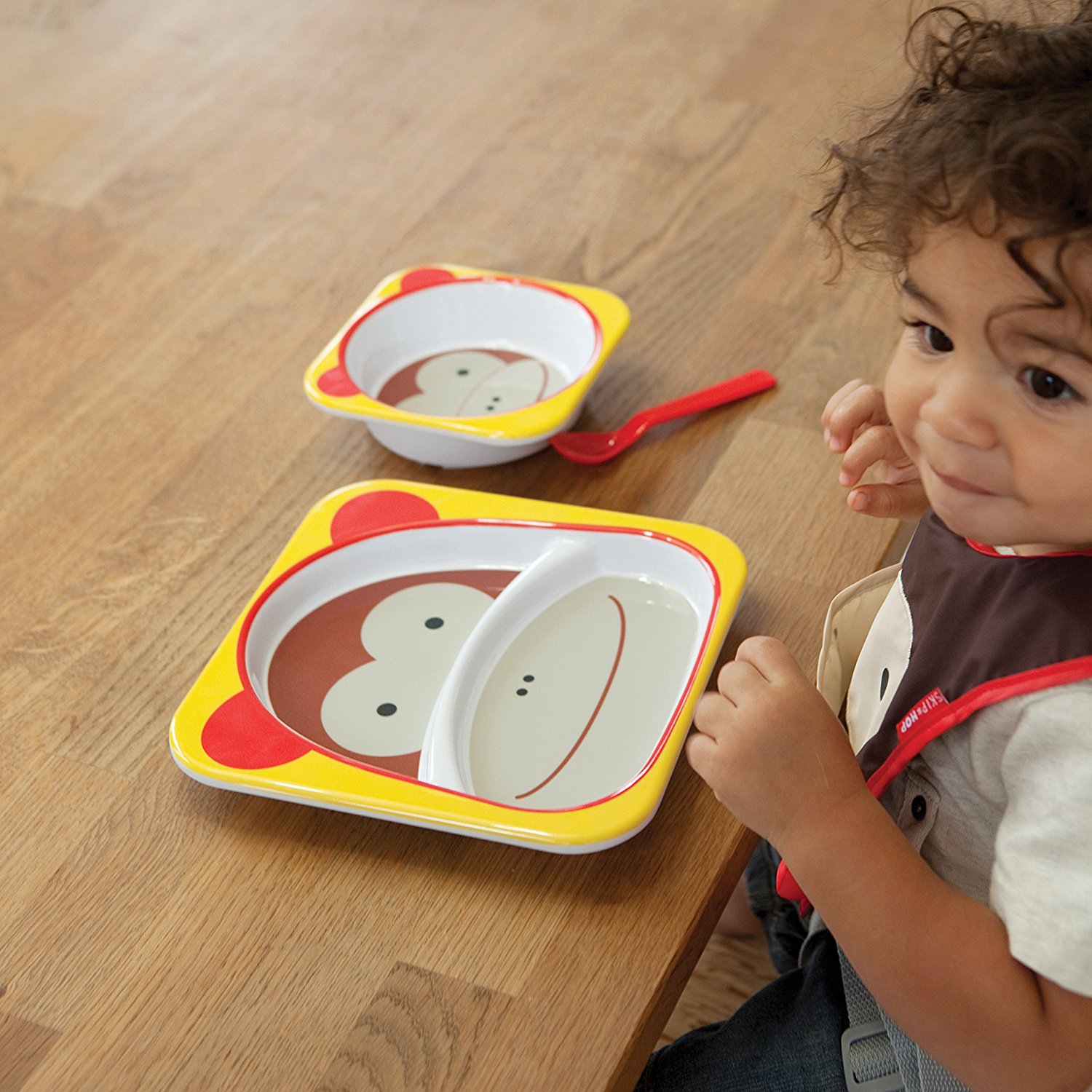 Acest set contine o farfuriuta compartimentata si un castronel, ambele din melamina foarte rezistenta.
