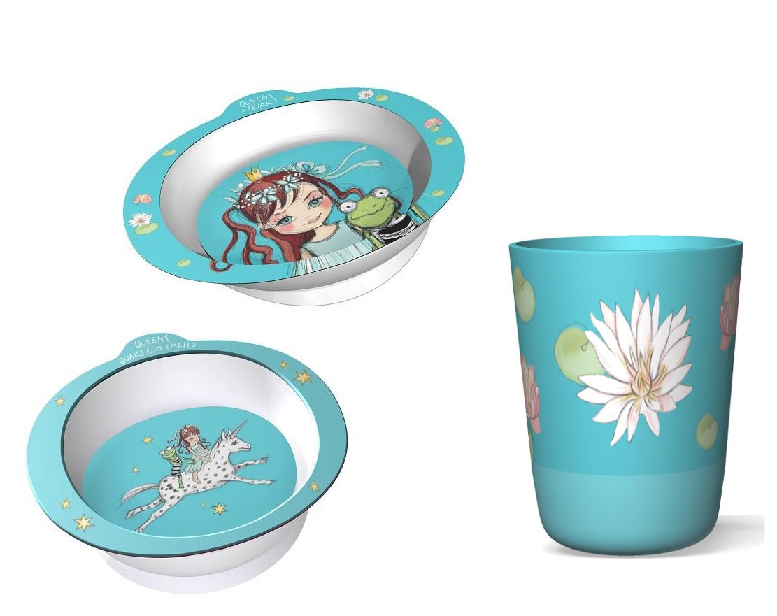 Setul de veselă pentru copii, Queeny & Quacks este extrem de prietenos cu mediul, fiind fabricat din fibre de bambus naturale.