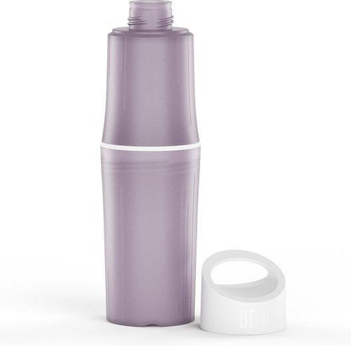 Sticla pentru apă Be O este 100% reciclabilă fiind fabricată din trestie de zahăr. Având un design modular ocupă puțin spațiu și poate fi spălată cu ușurință.