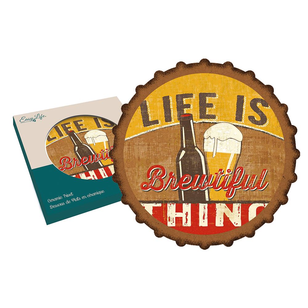 Suport pahare din ceramică cu bază din plută, diametrul 20 cm, cu design retro, pentru iubitorii de vin sau bere. Ceramica este un izolator termic natural iar baza din plută asigură stabilitatea suportului pe masă.