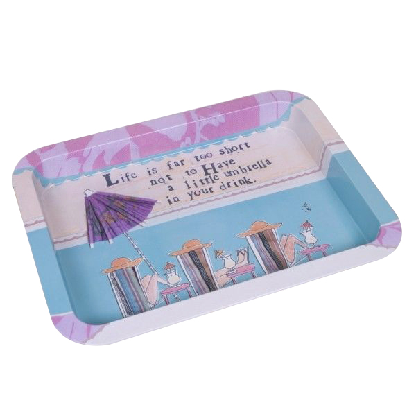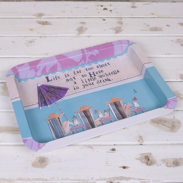 Tavă amuzantă purtând mesajul: Life is far too short not to Have a little umbrella in your drink.
