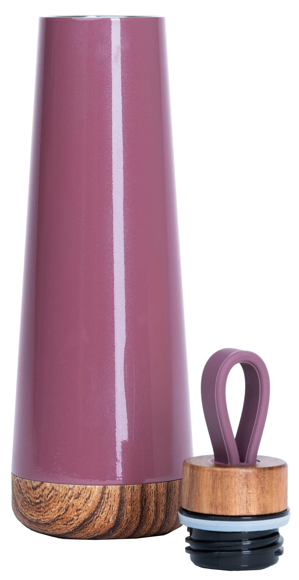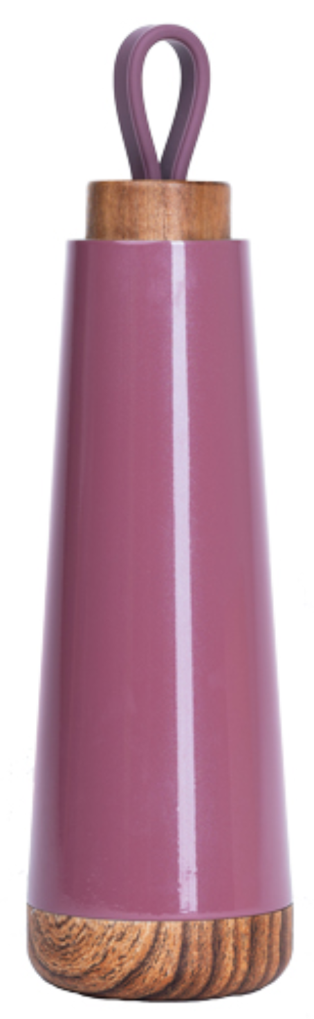 Designul său simplu și elegant este completat de un capac din lemn cu mâner din silicon.